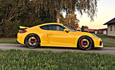 Serienmassig Sind Beim Cayman Gt4 Platinfarbende Oder Schwarze 20 Zoll Felgen Mit Michelin Pilot Sport Cup 2 Semislicks Und Serienmassigen Hochleistungs Bremsen Mit 38 Cm Scheiben Vorn Wie Hinten Optional Sind Fur Rund 7300 Euro Auch Carbon Keramik Bremsen