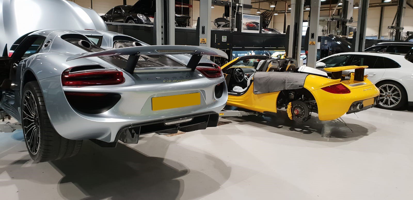 Porsche Retail Group On Twitter Porsche Supercar And Hypercar At Porschecentraloperations Rare Liquid Metal Chrome Blue 918 Spyder With Fayence Yellow Carrera Gt Both In For A Service With The Carrera Gt