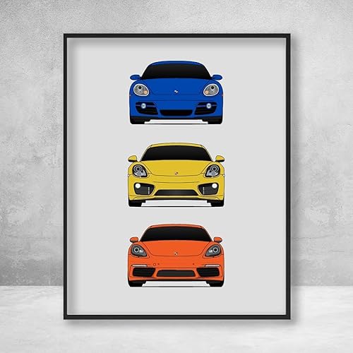 Amazon Com Poster Inspired By Porsche Cayman Poster Print Wall Art Of The History And Evolution Of The Cayman Generations Car Models 718 981 987 Handmade